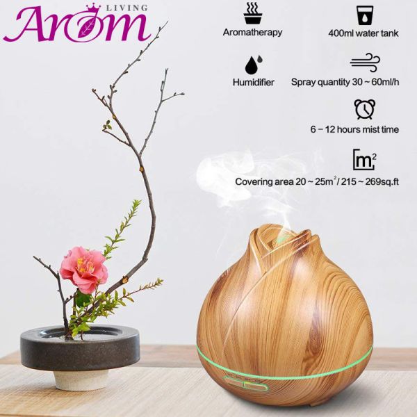 Ultrasonic 400ml Wood Grain Aromatherapy Diffuser with Auto Shut-off 7 Color for spa room